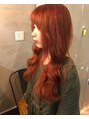 ブリーチした髪にレッドピンクをオンカラーして深みのある赤味を出しています。ヘアカラーと合うガーリーなテイストになるようにコテ巻きで仕上げました。