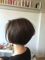 カット。。。グラデーションボブベースのショートボブです。カラー。。。全体はブルーアッシュの9レベル ハイライトは、ベージュの12レベル ローライトは、ナチュラルの6レベルです。。。