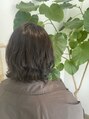 無造作にくびれるようにパーマを当てました!裾は外ハネにしてトップの髪の毛は自由に動くようにさせていただきました!朝のスタイリングも髪の毛のお手入れもすごく簡単なのでおすすめです!