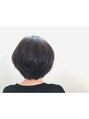 襟足はすっきりと、前下がりなのでショートすぎずやわらかいショートボブです。片耳をかけてヘビーサイドで動きを♪