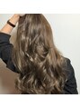 ベージュベースにアッシュとセピアカラーなどを混ぜ合わせながらもツヤ感を出したカラー。