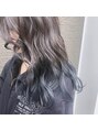 根元はダークアッシュで、バレイヤージュで毛先をブリーチしてネイビーカラーを入れたグラデーション♪