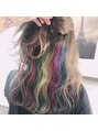 全体ブリーチを重ねて、ベースは赤みを抑えたアッシュベージュで、インナーに5色のカラーバターでユニコーンに♪