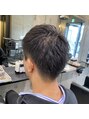 刈り上げはブロックにせず、グラデーションで繋げてトップは6cmくらいのモヒカンベースに切ります。束感を出しやすくするよう量を減らしてスタイリング時にワックスを揉み込んで完成です。