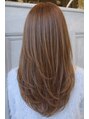 極細のハイライトを全体に入れることで白髪を自然にぼかしながら立体感とツヤ感を引き出したレイヤーロング★ベースは肌なじみの良い上品ブラウンで、伸びてきた白髪も目立ちにくく、顔まわりに入れた繊細なレイヤーが動きを与え柔らかく女性らしい印象に♪