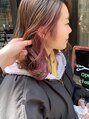 ベースはハイライトたっぷりの柔らかいベージュに。インナーは濃いめのチェリーで色落ちも楽しめます。髪を下ろしている時は落ち着いた印象にできて、耳かけしたり結んだりするチラッと見えるのでとってもおしゃれで可愛いです♪