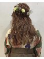 全体をフワッと巻いてトップにボリュームをだしたハーフアップ。王道だけど人気なハーフアップはお客様の顔な形や髪質を見てバランスよく仕上げます。お着物の場合は生花等のお花を付けても可愛いです♪