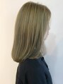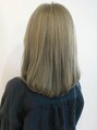 明るいベースのカラーリングにはっきりわかるようにローライトを入れて立体感を出しています。重めのカットのヘアスタイルですが、明るさとローライトでいろんな表情が出るように染めています。白髪染めを辞めたいなと思っている世代の方にもおすすめです◎