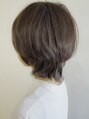 もともとのクセをいかしてカットした大人の外ハネスタイルです☆湿気などでクセが出て広がってもカットでくびれを作っているのですっきりとした印象になります。明るめの白髪染めでベージュ系のカラーリングに仕上げています。デジパをするとよりgoodです◎