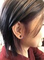 ウルフカットにはインナーよりもイヤリングカラーがオススメ!ブルー・パープルのダークトーンをベースに髪をかけをかけるとピンク色がチラリ。仕事場では暗めでないとダメでもこれならプライベートも楽しめます。個性派さんお洒落さんオススメカラーです。