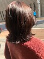 伸ばしかけで外にはねてしまいパサついて見えるのが気になるお客様です。ピンク系のカラーでツヤ感を出して、あえて外ハネで伸ばしかけでも飽きないように!!!