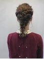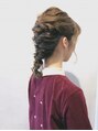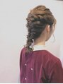ロープ編みとクルリンパでつくる編み込み風アレンジ。波ウェーブでベースを作ってプロダクトでまとまりやすくした後に、ゴムで結んでベースを作って、サイドロープ編み、下の部分はゴムで結んでくるりんぱを連続で作りながら毛束を引き出して完成☆
