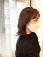 薄めの前髪にサイド頬にかかる後れ毛でくびれを作る人気のスタイル。カラーはダメージレスオイルカラーのアルティストで艶感のあるブラウンに♪
