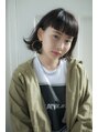 アゴラインのぱっつんとした切りっぱなしボブ。量感は軽くして、コテで外はねに巻きます。前髪はモードっぽく眉上で厚めに取りVバングにカット☆スタイリングはウェットになるようジェリーワックスで仕上げます。カラーは6トーンのアッシュブラウン
