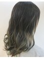 【ブルージュ×ハイライト】です。ベースは6トーンのブルージュで中間から毛先にかけてハイライトを入れて透明感を出しています☆