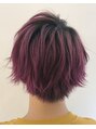 すっきりとしたショートヘアにピンクとラベンダーを混ぜた【マゼンタ】です。あえて残した地毛の黒とのコントラストがオススメです。