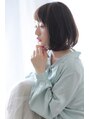 甘めのブラウンベージュカラーのボブスタイル。シンプルだけど、ショートバングで少し遊んだスタイルに。
