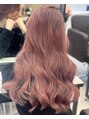レッドカラー/ロングヘアー/渋谷/エクステ/ブリーチ/韓国