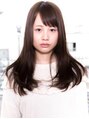 透明感のある極ゆるナチュラルセミロング。毛先は少し曲げるだけで巻きすぎない方が大人っぽい。ルーズに揺れる髪がラフ感を出し、前髪は少し肌を見せて透け感を作る。カラーは透明感のでるベージュ系でやわらかい印象にしました。
