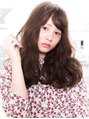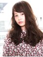 重めシルエットに、ブラウン系の明るめカラーと作りこまないラフなカールをオン。甘辛バランスのとれたフェミニンでリラクシーなモテロングに♪目の上ギリギリの流し前髪と、フリルのように織りなすカールは、触れたくなるような極ふわ感です☆