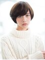 シンプルなショートボブはカットラインで差をつけて。 軽すぎても重すぎても決まりずらいのでバランスが重要なスタイル。 流し前髪にして子供っぽくならない大人かわいい雰囲気を演出。 カラーは軽さが出るくらいの雰囲気を出しました。