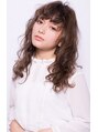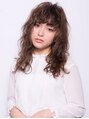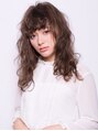 外国人風のランダムウェーブパーマをかけたセミロングスタイル。弾むようなウェーブを崩して無造作風に。