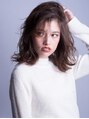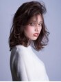 柔らかな質感をプラスしたパーマ、ナチュラルでヌーディーなミディアムボブ。伸ばしかけの方でも挑戦できる、まとめやすいスタイルです。