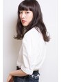 シンプルで美しいフォルムのロングスタイル。前髪のパッツンと緩やかなウェーブが対照的でモードなスタイル。