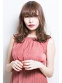 厚めバングに、緩やかなほつれ感のあるウェーブを足して、エレガントで大人かわいいセミロングスタイルに。小顔感のあるスタイルならお任せください!骨格補正カットでお客様の理想のスタイルを作ります!