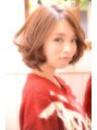 カラーはオレンジ、ベージュ系の暖かみのあるかんじで。パーマで動きをだすことで、お手入れが簡単になります☆【miel hair est】