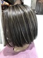 ハイライトを入れたボブスタイル。ベースを暗めにすることでハイライトを強調したヘアカラーです。