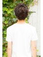 バックはハサミでグラデーションになるように刈り上げた大人2ブロックスタイルです。トップは高さがでるように。でにくい方はパーマをかけると◎