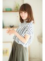 ナチュラルなワンカールが清楚なミディボブです。エアリーな毛先と重めのバングで大人ガーリーな雰囲気にしました。のばしかけの方もOKなスタイルです。