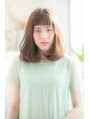 頬の部分にレイヤーをつくり、さらに表面にウェーブパーマを入れることで小顔効果を出しています。透明感のあるカラーで立体感◎