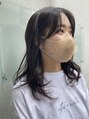 大人ゆるふわミディアム暗めのアッシュブラウンでトーンダウンしてその中に抜け感を作るために顔周りにレイヤーを少し入れて。マスクでもお洒落を楽しむあなたにぴったりな小顔レイヤースタイルです。
