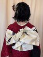 短めボブからでも、襟足をすっきりまとめて横顔・後ろ姿まで美しく仕上げました。振袖の色味と髪飾りをリンクさせることで、派手すぎず、でも印象に残るスタイルに。