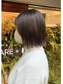 思い切ってバッサリ。オレンジ味を抑えた透明感グレージュで、落ち着きと艶を両立。耳にかけても美しくまとまるライン感で、首元をすっきり見せる大人のミニボブ。甘くなりすぎない、きちんと感のあるスタイルです。/髪質改善/ボブ/トリートメント