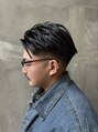 バズカットとフェードでスッキリかっこいいスタイルです。アクセントで眉毛のラインと延長線で繋がるラインが入ってます。仕上げはグリースをたくさん付けるのがいいです◎