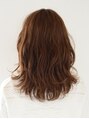ベースは毛先に厚みを持たせた切りっぱなしシルエット。表面に軽くレイヤーで動きを持たせたら、大きめのロッドでゆるやかなウエーブをかけて、思わず触れたくなる柔らかな雰囲気に。前髪はかすかな束感で。抜け感と上品な印象をプラス!