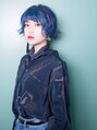 派手髪の中でも比較的挑戦しやすいブルー系。一色で物足りなければ、イエローやパープル、ピンクのハイライトで遊びを効かせます。