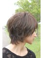 トップはレイヤーを入れ、サイドはマッシュラインにカットして、ひし形シルエットに、ボディーパーマでフワフワショートスタイルです