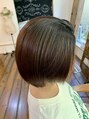 くせでまとまりの悪いボブをスッキリまとまりツヤのあるボブに変えました。酸性縮毛矯正は癖だけでなく硬い髪質の方も柔らかく手触りの良い髪に変えることができます。