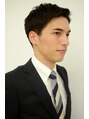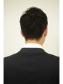 サイド、バックは程よく刈り上げにしトップは、ボリュームを出す為に少し長めに残しました。髪の量は立ち上がりがつきやすくなるようにすきました。もみあげと襟足は形をしっかり整え、後ろから見ても好印象を与えられるようなスタイルにしました。