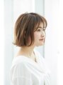 肩上レングスの切りっぱなしボブスタイル。耳かけをすることによって春らしく抜け感を出しています!毛先は外ハネ、トップはふんわりさせる事でメリハリのある大人ボブスタイルの完成です!