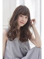 ストレートバングにキュアパーマの大きめなウェーブがおしゃれなスタイルです^_^夏にぴったりのブルーベージュは光の当たり方で色が変わります!服がシンプルになる夏こそ、フワフワなパーマスタイルはオススメです!