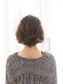 くせ毛を生かしたパーマ風のボブスタイルです。顎ラインで切りっぱなしボブにして前髪は少し目にかかる長さにして甘くなりすぎない大人ヘアスタイルです。