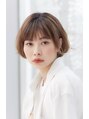 ひし形シルエットの大人かわいいショートボブ。大人ボブ。前髪は下ろしバングで小顔に。また無造作感をプラス。はちうえの量が膨らみすぎないよう量を間引きながら調節し骨格に合わせた似合わせカット。簡単スタイリングヘア。大人ボブ。耳かけにしてもGood!
