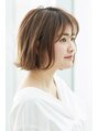 肩上レングスの切りっぱなしボブスタイル。耳かけをすることによって春らしく抜け感を出しています!毛先は外ハネ、トップはふんわりさせる事でメリハリのある大人ボブスタイルの完成です!