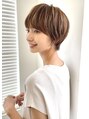 ひし形シルエットの大人かわいいショートボブ。艶カラーの大人ショートボブ。シースルー前髪で小顔に。抜け感ヘア。はちうえの量が膨らまない様に量をすいた骨格に合わせた似合わせカット。簡単スタイリングヘア。グレージュカラー グレーベージュ 斜めバング