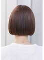 【気に入って頂いたスタイルは、ブックマークをしてご提示ください】アゴラインミニボブ。外ハネの丸みボブに透明感ベージュブラウンが重く見えがちな硬い髪も柔らかく見えます。20代30代40代50代60代と幅広い年齢のお客様にご来店して頂いてます。